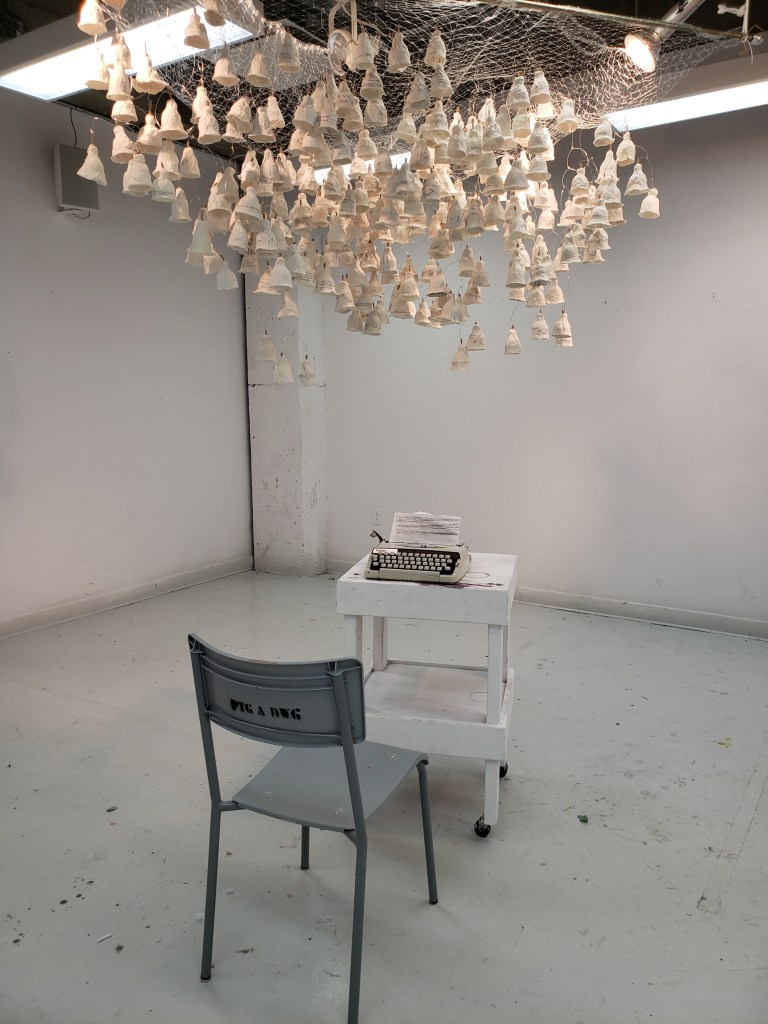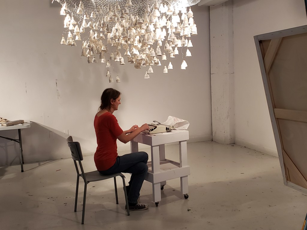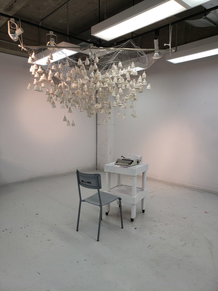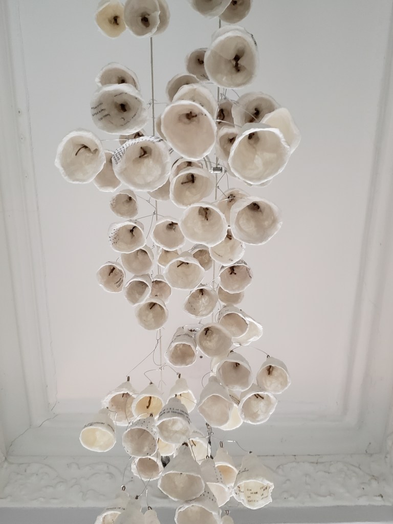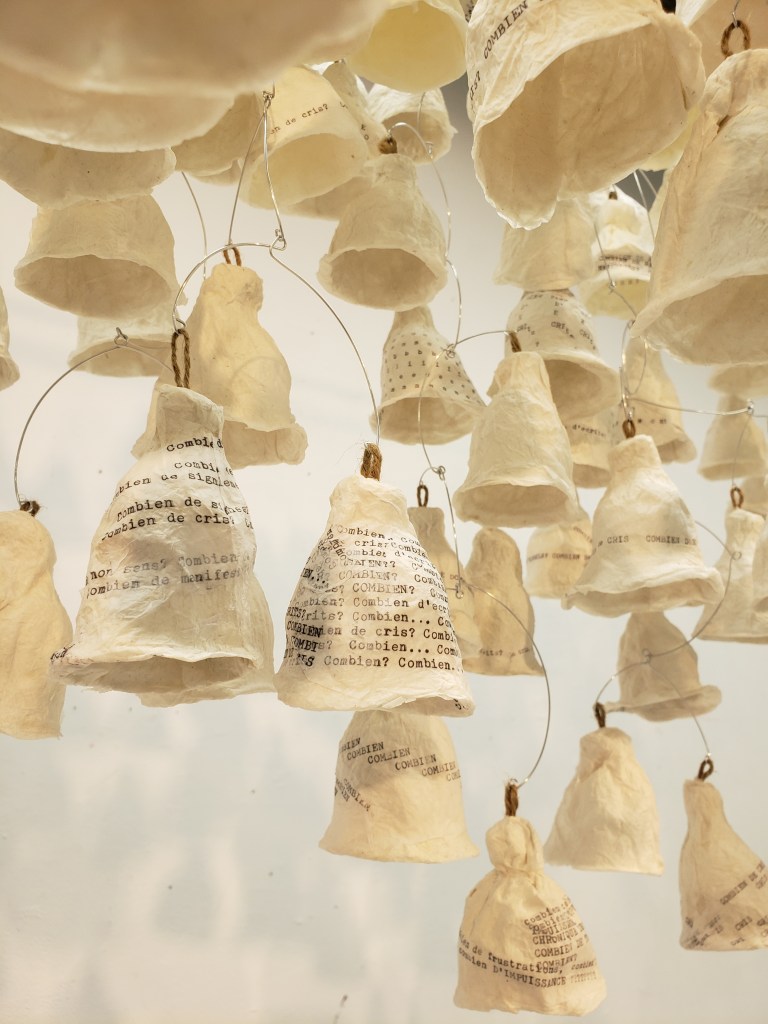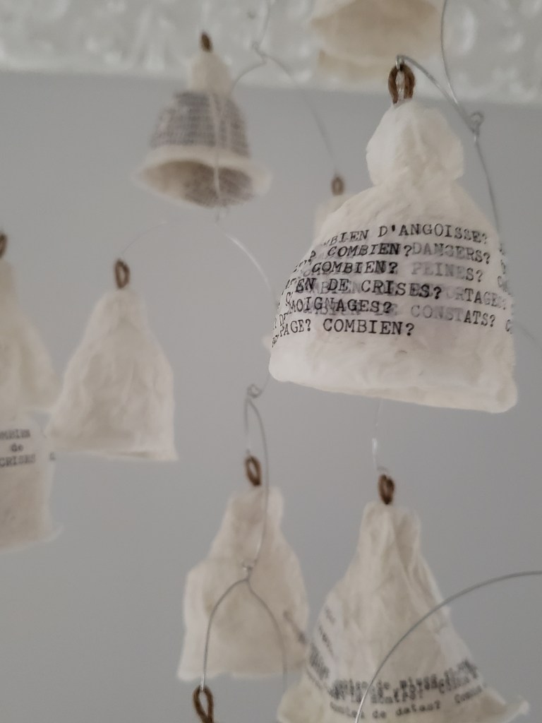 , cloches de papier, filet, fil d’aluminium, 2022.