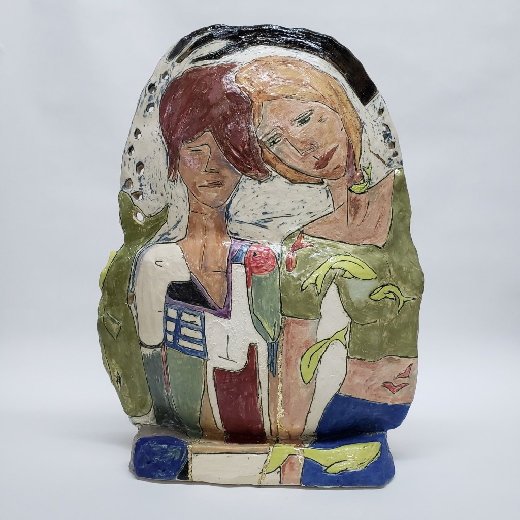 Démeter et Perséphone, 33x28x22 cm, 2024Dis-moi que tout est encore possible, 44x32x30 cm, 2024Side by side, 45x36x18 cm, 2024Un océan dans la tête, 38.5x31x8 cm, 2024 I was not made by an AI, 38x30x30 cm, 2024Les histoires qu’on se raconte, 42x12x12 cm, 2024I’ll always have your back, 40x31x17cm, 2024Le lac en été, 33x20x20cm, 2024Toi + toi + toi = trois, 32x14x15 cm, 2024