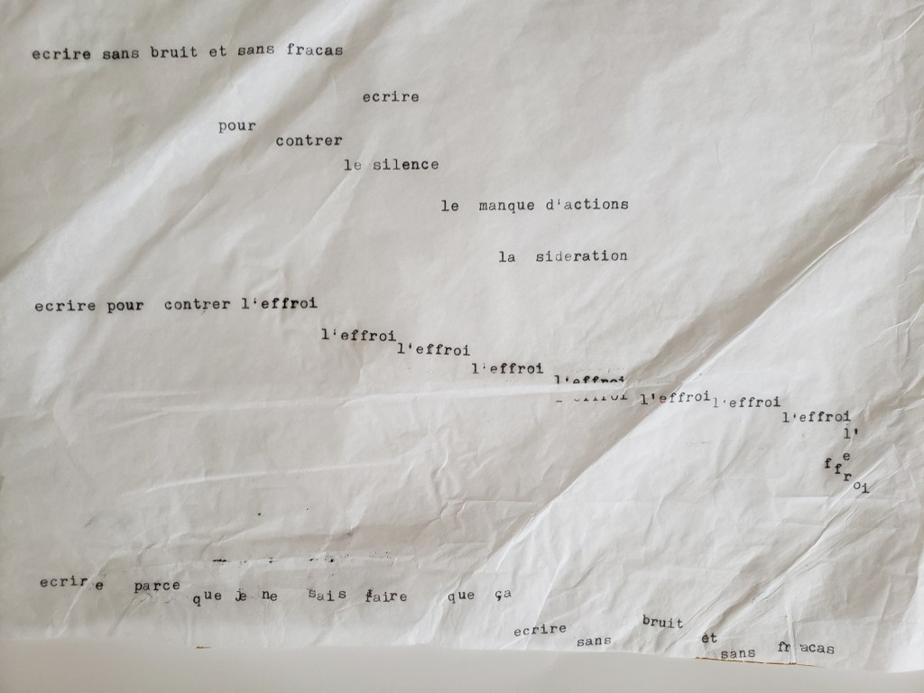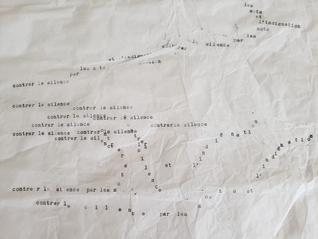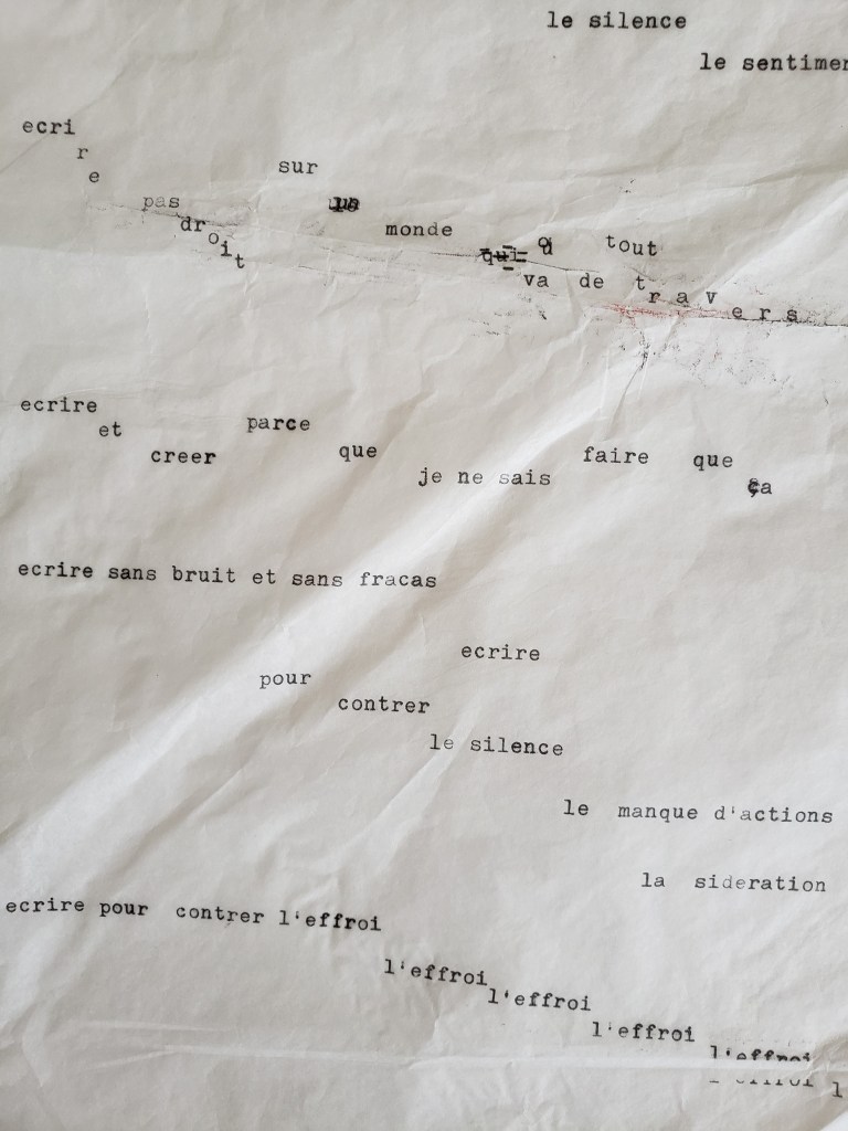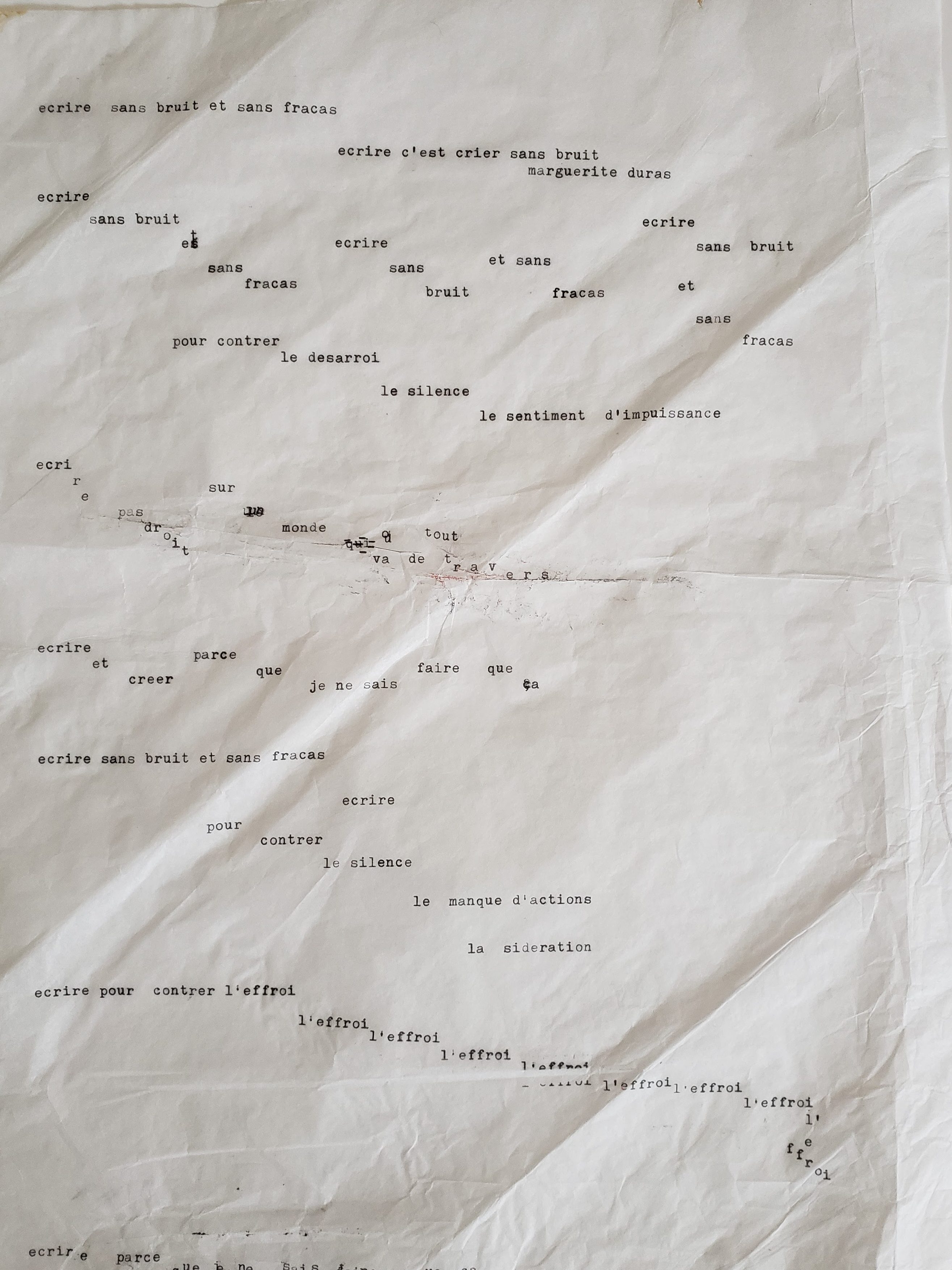 , série de mots dactylographiés sur du papier de soie, 2022.