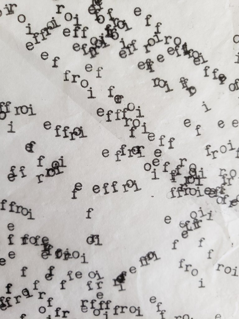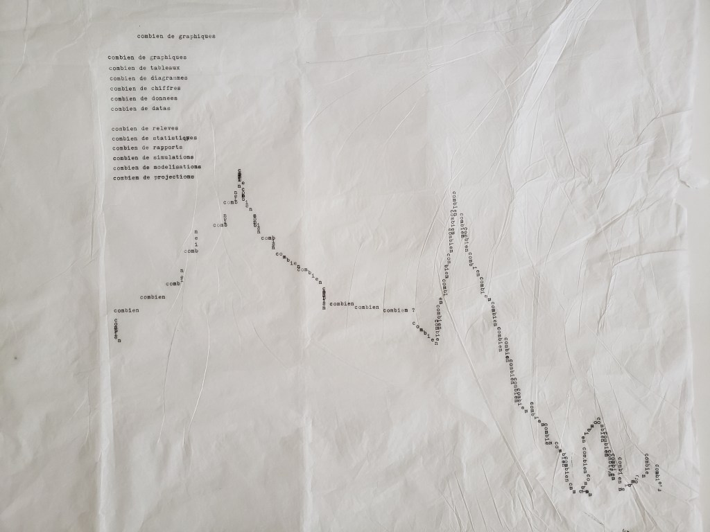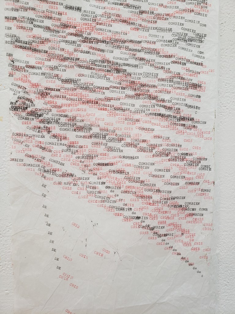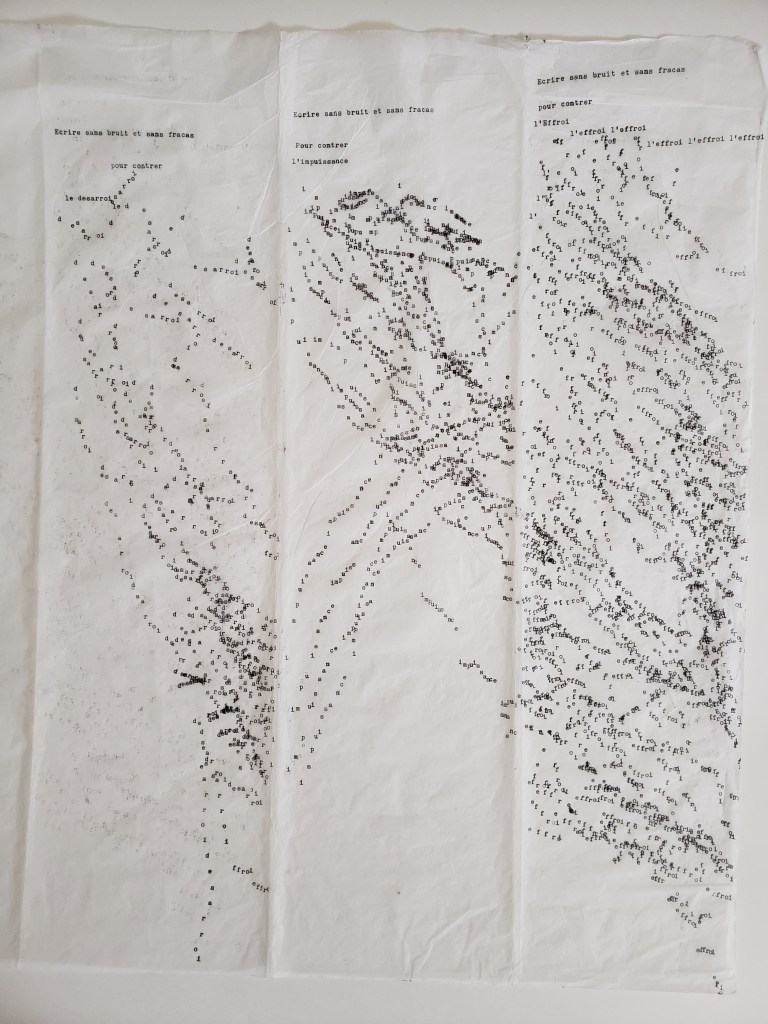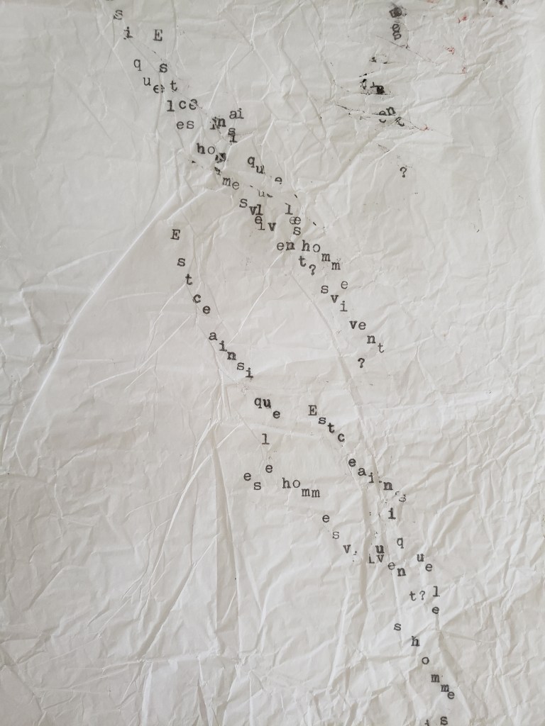 , série de mots dactylographiés sur du papier de soie, 2022.